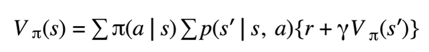 - Although it seems simple it has one key characteristic. This is that the computation of the value function is recursive. Calculating the value function at the current state “s” depends only on the possible next states as prime. There is no need to say traverse a possibly infinite number of future trajectories to estimate the expected value. In other words, you don't need to search an entire probability tree.