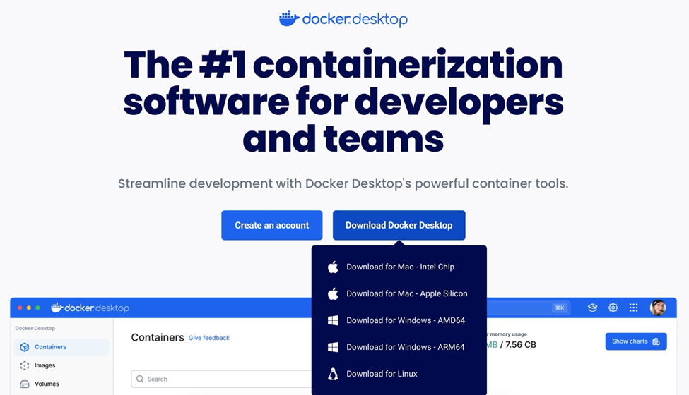 - Download Docker desktop from docker hub official website https://www.docker.com/products/docker-desktop/